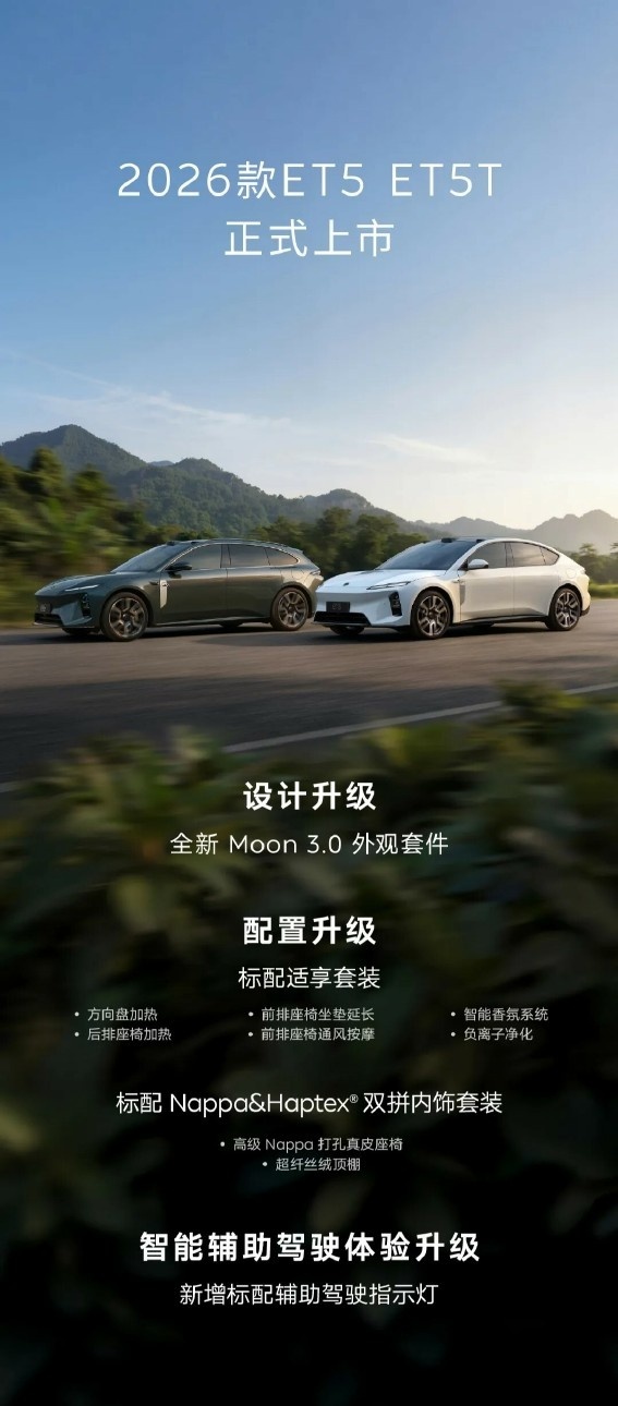 18、2026 款蔚来 ET5、ET5T 上市:新增标配辅助驾驶指示灯,电池租用方案 19 万起